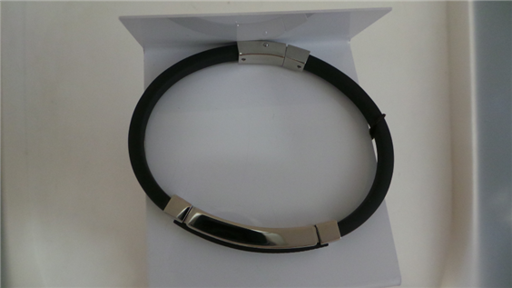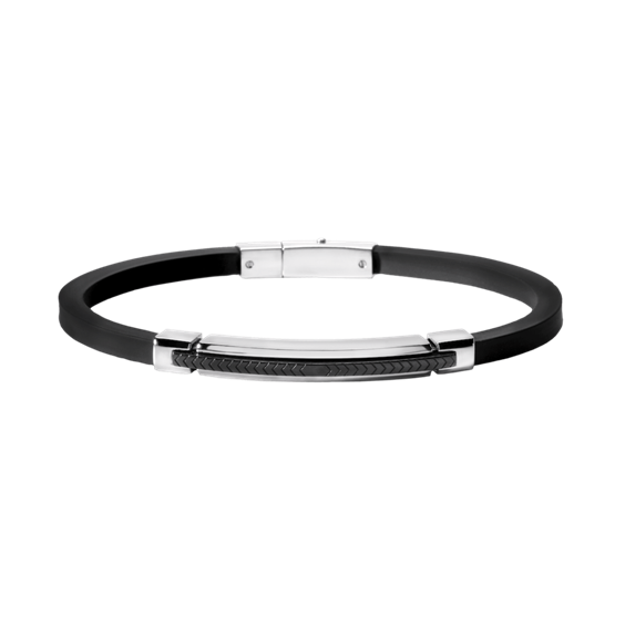 Bracciale Comete Uomo in gomma morbida nera con targa centrale in acciaio lucido trattamento PV nero opaco.