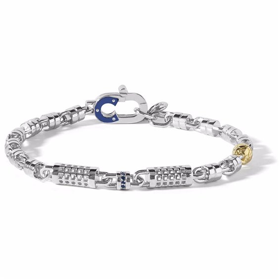 Bracciale in acciaio con cristalli blù e trattamento in PVD blù e oro giallo .Lunghezza cm. 21,5 accorciabile a 19,5. -diametro maglie mm. 4,7. Il pallone, lo scudetto, la rete. Sono questi gli elementi dei gioielli dedicati alla grande passione del calcio. Scatola originale. Certificato di garanzia 2 anni.
