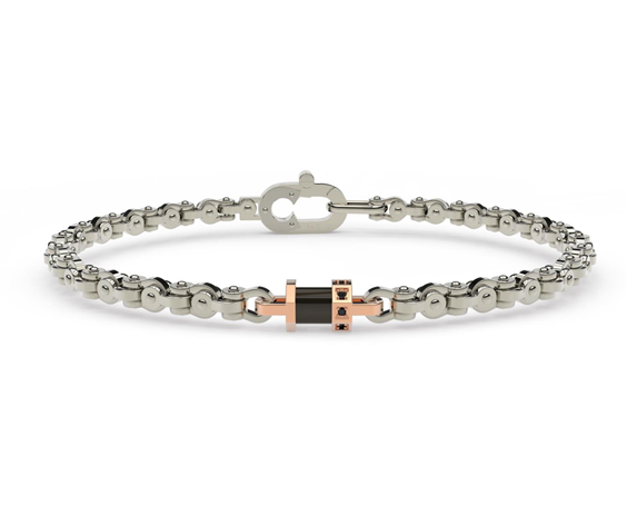 Bracciale Comete Uomo in acciaio anallergico con trattamento in PVD oro rosa e spinelli neri su elemento centrale. Chiusura a moschettone con logo . Lunghezza 21 cm. Scatola originale .Certificato di Garanzia 2 anni.