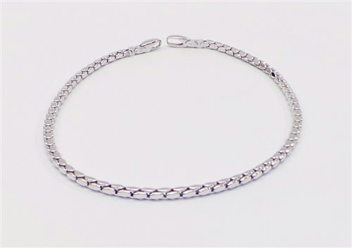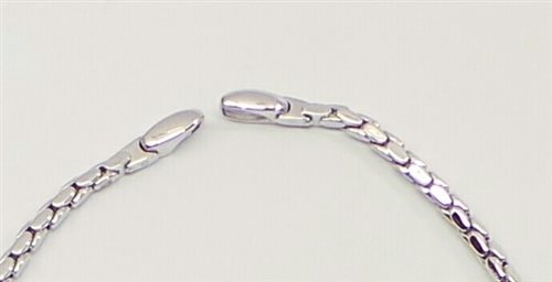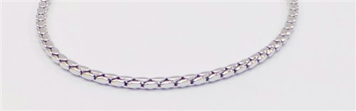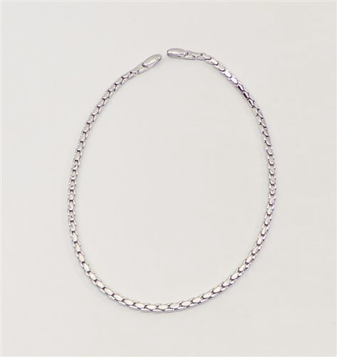 Collier Fope in oro bianco lucido, maglia ad elementi ovali snodati tra loro. Dimensioni maglia 4x4 mm. lunghezza 42 cm. Peso 28.3 grammi. Doppia chiusura a moschettone con logo. Modello depositato. Scatola certificato di garanzia e autenticità originali.