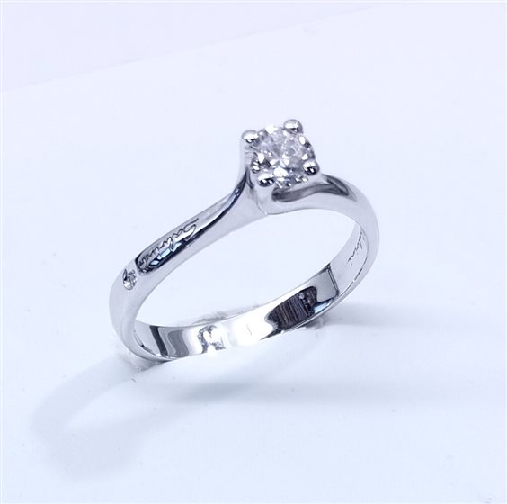 Anello Salvini donna solitario in oro bianco 18 Kt. con diamante taglio brillante di 0,35 ct. Vs G+ con originale montatura a quattro griffe . Misura 15 modificabile. Garanzia e Certificato di Autenticità Salvini con assicurazione rapina e scippo e scatola originale.