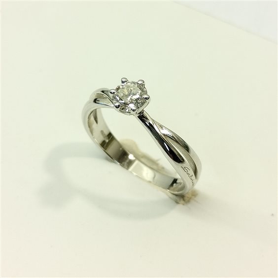 Anello Salvini donna solitario in oro bianco 18 Kt. con diamante taglio brillante di 0,35 ct. Vs G con originale montatura a sei griffe . Misura 15 modificabile. Garanzia e Certificato di Autenticità Salvini con assicurazione rapina e scippo e scatola originale.