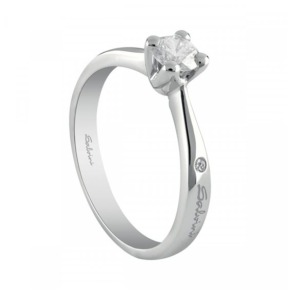 Anello Salvini donna solitario Collezione Virginia in oro bianco 18 Kt. con diamante taglio brillante di 0,17 ct. VS G , montatura a quattro griffe con diamantino sul gambo. Misura 11 modificabile. Garanzia e Certificato di Autenticità Salvini e scatola originale.