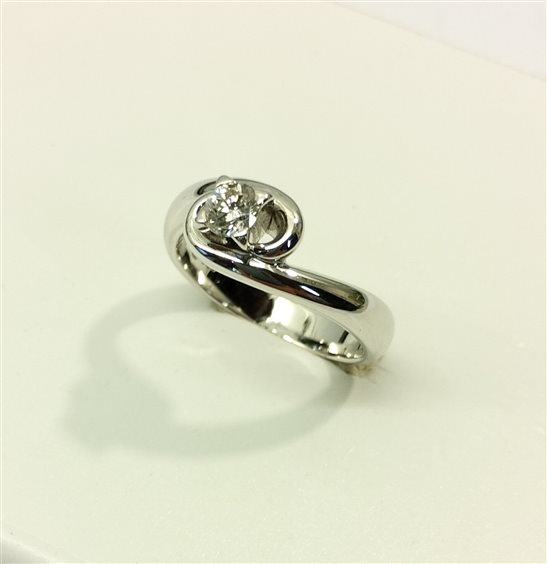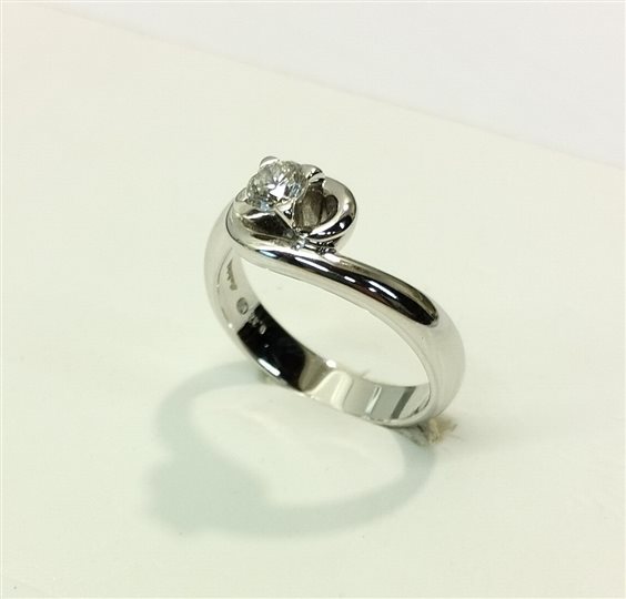 Anello Salvini donna solitario in oro bianco 18 Kt. con diamante taglio brillante di 0,32 ct. Vs H con originale montatura a quattro griffe . Misura 16 modificabile. Garanzia e Certificato di Autenticità Salvini con assicurazione rapina e scippo e scatola originale.