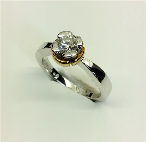 Anello Salvini donna solitario in oro bianco 18 Kt. diamante con originale taglio brillante a otto lati di 0,45 ct. Vs H , castone a due livelli in oro rosa e bianco, forma quattro petali fiore. Misura 15 modificabile. Garanzia e Certificato di Autenticità Salvini con assicurazione rapina e scippo e scatola originale.
