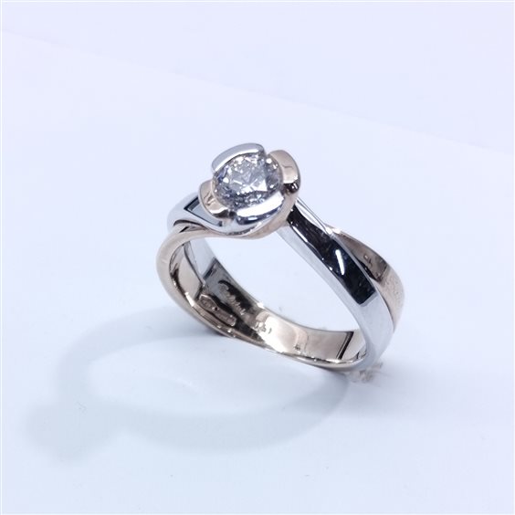 Anello Salvini donna solitario in oro bianco e rosa 18 Kt. diamante con taglio brillante di 0,51 ct. Vs H , castone in oro rosa e bianco forma quattro petali fiore. Misura 15 modificabile. Garanzia e Certificato di Autenticità Salvini con assicurazione rapina e scippo e scatola originale.