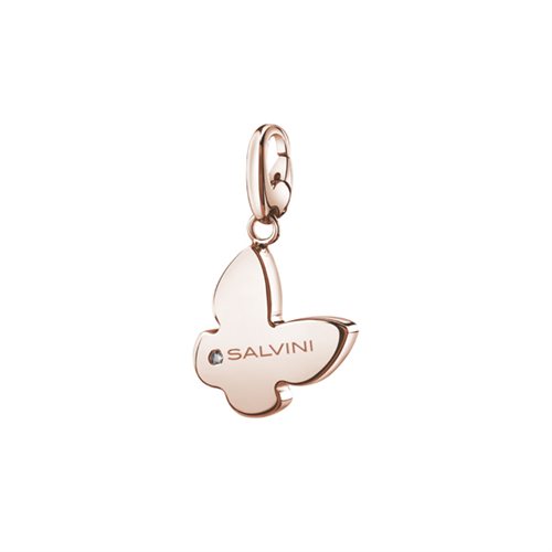 Charms a forma di farfalla in argento placcato oro rosa con diamantino e moschettone per l'applicazione sul bracciale della collezione Charms of love.