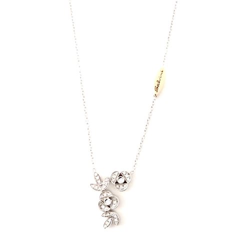 Collana collezione Provence in oro bianco 750% lunghezza 54 cm. accorciabile a 44 cm. Centrale in oro bianco con diamanti taglio brillante ct. 0,25 H lunghezza 24 mm. spessore 3,5/3 mm. peso totale collana 9,6 grammi. Chiusura personalizzata a moschettone con diamantino. Garanzia e Certificato di Autenticità Salvini con scatola originale.